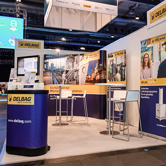 DELBAG Messekombination - Gestaltung und Produktion einer Expand-Wall mit Theke- Gestaltung und Produktion von zwei RollUps